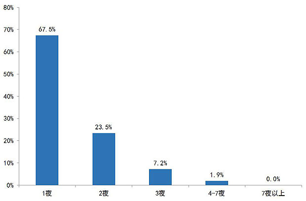 三是过夜游客比例明显提升,停留时间有待进一步提升。一方面,过夜国内游客稳步保持高速增长。2017年1-3月,在黔国内过夜游客4748.25万人次,同比增长28.4%,占全省接待总人数的32.8%。人均停留时间达到1.56天,比2016年国内游客停留时间提高1.3个百分点。其中,停留1夜的国内游客占比达67.5%,仍是我省过夜游客的主体,超过2夜的过夜游客比例相对较小,停留2夜、3夜以及4—7夜游客比例分别下降至23.5%、7.2%、1.9%,7夜以上的过夜游客比例几乎为零。