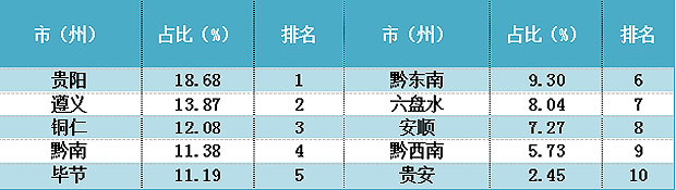 从各市(州)接待的入黔漫游游客占比情况来看,贵阳、遵义、铜仁、黔南和毕节五市(州)优势相对突出,占比均在10%以上,合计占比达67.7%。