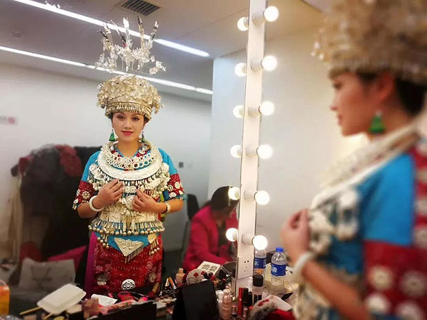 这台传统文化春节联欢晚会有一位特别的编导,一位坚韧的苗家姑娘,她是龙妹金,也是欧桑工作特别的合作伙伴。