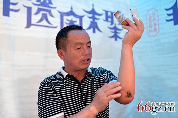 童治强的“童氏跳骨丹”在活动现场进行售卖