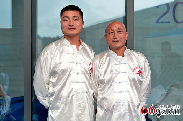 传承人童治强(右)与小儿子(左),小儿子现随父亲学习少林俗家功夫。