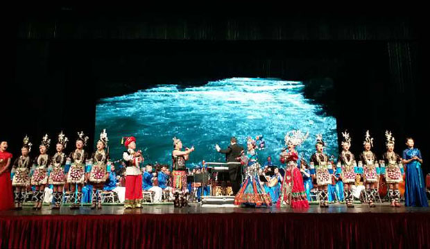 演出现场,贵州省民族管弦乐团献上了《序-夜郎》、《丹砂神韵》、《文琴戏韵》、《醉美贵州》等精彩曲目......