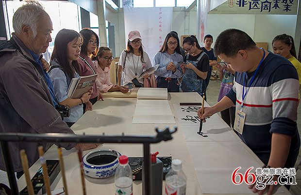 在活动现场,为了营造笔墨纸砚的书香氛围,还专门辟出一块区域有书法老师为到场的观众现场挥墨并免费赠送。“鹏程万里”、“金榜题名”、“宁静致远”,一句句祝福的话语、一幅幅散发着墨香的书法作品表达了对前来参加岑巩县周末聚活动的市民及游客的祝福。