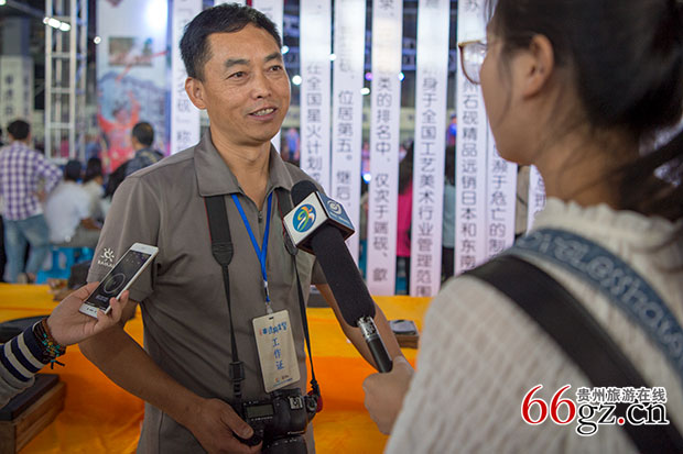 安邦文化产业有限责任公司董事陈贵昌向我们介绍道:安邦公司近年来正在着力打造及推广岑巩县文化类产品,此次活动带来的砚台,部分是当地手工艺人雕琢而成。虽然岑巩石砚名气很大,但市场表现一直不温不火。于是,我们通过在雕工和设计上下功夫,这次展出的展品比以往雕刻更精致,设计更文气,更符合行业内的审美,相信也会更符合大众审美。