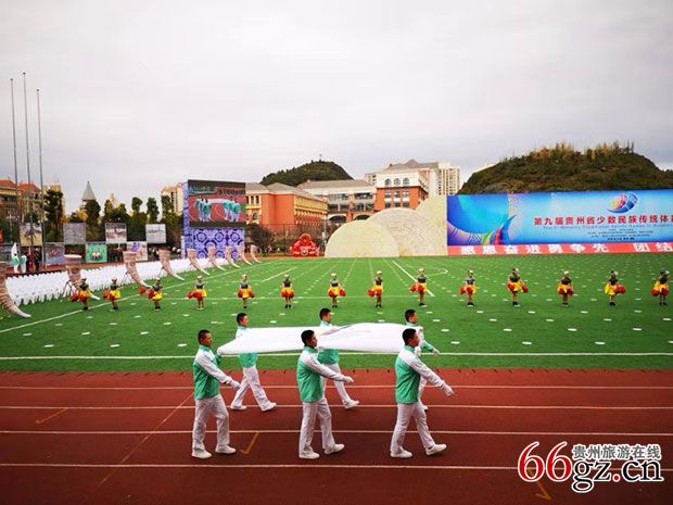 贵州省第九届少数民族传统体育运动会开幕式上还表演了以创新为主旨,以和谐为基调的,展示贵州各民族智慧、力量和一致,预示贵州各民族腾飞的大型文体表演。既有浓郁民族风情,又有改革开放的现代气息,将开幕式推向了高潮……