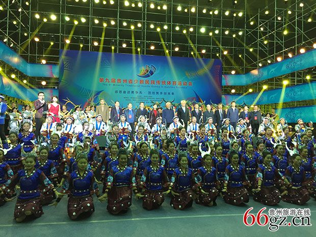 贵州旅游在线讯 11月11日——“双11”是一年中仅有的大喜日子。下午4时在披上节日盛装的贵州省体育馆,贵阳市幼儿师范专科学校的同学们以优美动人的歌舞《盛世欢歌》,迎来了第九届贵州省少数民族传统体育运动会(以下简称运动会)的园满闭幕及颁奖仪式。省人大常委会副主任、秘书长陈鸣明,省人大常委会原副主任杨序顺、林明达等出席闭幕式并为获奖者颁奖,省人民政府副省长、运动会组委会常务副主任王世杰致闭幕词并宣布闭幕。闭幕仪式由省民宗委党组书记、主任,组委会副主任石松江主持。