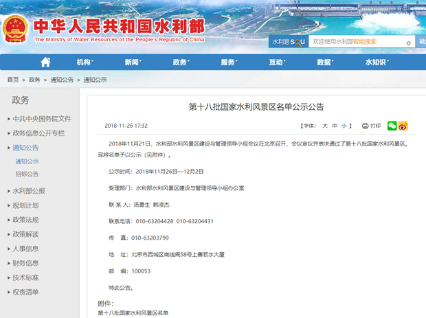 11月26日,水利部网站发布《第十八批国家水利风景区名单公示公告》,全国共46家入选。据悉,贵州省铜仁白岩河水利风景区、遵义茅台渡水利风景区、黔南州雍江水利风景区均榜上有名。