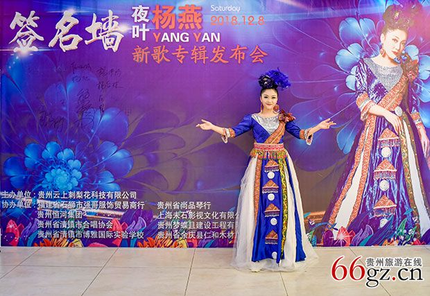 贵州旅游在线讯 12月8日,苗族歌手杨燕在贵阳市举行首张个人专辑新闻发布会。活动现场杨燕用一曲《索岭赞》表达了对家乡的爱。歌词以家乡美景为依托,结合家乡在少数民族地区的特点,歌曲旋律起伏较大 ,曲调高昂,寓意改革开放40年来,关岭县发生的巨大变化。