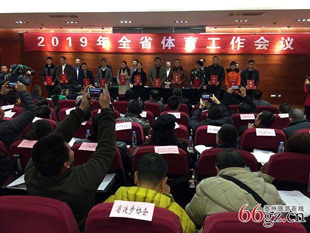 会议指出,2018年,贵州在群众体育、竞技体育、体育产业、体旅融合、体育扶贫等方面了取得新进展,全省体育工作再上新台阶。其中全民健身成效显著,全年争取中央、省级各类资金14亿元,支持全省各市州92个公共体育场馆、25个生态体育公园、1000公里健身绿色步道工程建设,完成12个县级以上老年体育活动中心、50个城镇保障性安居工程体育配套设施建设、80个乡镇和773个行政村农民体育健身工程建设,农体工程覆盖率分别达到85.4%和86.5%,均同比增长5.8个百分点;全省常住人口体育场地面积提升至人均1.09平方米,同比增长35%;支持各市州举办赛事活动经费2500余万元,成功举办红红火火过大年、全民健身月(日)、全国广场舞大赛、第九届贵州省少数民族传统体育运动会、第六届贵州省残疾人运动会、第十四届全省健身气功比赛等一系列全民健身活动;竞技体育捷报频传,成功举办自恢复省运会以来规格最高、规模最大、社会关注度最广的省第十届运动会,12个代表团参加了竞技体育和群众体育51个大项559个小项的比赛,田径、游泳、举重、射箭等竞技项目68人次打破56个小项省运会纪录,涌现了一批优秀后备人才,为我省备战2020年东京奥运会和2021年第十四届全运会奠定了坚实的基础。运动员在各类国际国内比赛中共获得36金42银45铜共123枚奖牌的好成绩,较2017年(22金21银18铜)分别增长63.6%、100%、150%;山地户外运动蓬勃发展,围绕打造国内一流、世界知名山地旅游目的地和山地民族特色体育大省强省的目标,积极引导公众培养健身休闲运动生活方式。,应贵州旅游“井喷”式增长的总体要求,推动体育与旅游深度融合发展,圆满完成2018国际山地旅游暨户外运动大会各项工作任务,举行了一系列联动赛事,成为世界认识贵州、了解贵州的重要窗口,成为展示贵州山地体育旅游发展成就、推动体育旅游扶贫的重要平台;体育产业快速增长。32个大健康运动产业调度项目完成投资近49.69亿元。融合发展持续加快,与省文化和旅游厅共同探索“一园一线一赛支撑一景一会一区”的体育旅游发展路径。据测算,2018年全省体育产业总规模有望突破230亿元;体育文化宣传和对外交流不断深化,通过主动加强与省市宣传部门和省内外主流媒体和新媒体合作,协调组织更多媒体资源参与宣传全省各地丰富多彩的体育赛事活动,部分媒体产品在宣传赛事中获10万+、100万+点击量。体育对外交流日益频繁,同日本、韩国、土耳其、柬埔寨、香港、澳门、台湾等国家和地区建立了合作机制,全年外出参赛、开展体育交流5批38人次,接待来黔参与体育交流活动人员53人次,为多彩贵州和贵州体育走向世界作出了积极贡献;体育改革稳步推进,编制实施了一系列改革工作方案》等政策性文件,特别是首次把群众体育项目纳入省运会,打破专业与非专业壁垒,实施跨单位组队,允许个人参赛等;体育扶贫成效明显,通过支持举办各种山地户外运动赛事,促进乡村旅游消费,增加农户创收。开展驻村帮扶工作,服务精准扶贫、助推同步小康,目前对口帮扶的笃山镇5个贫困村已脱贫摘帽。