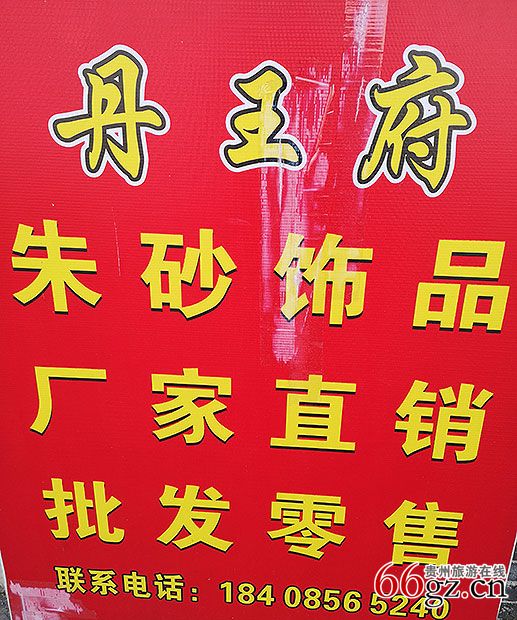 早上九时,在此处的为人民服务办公室大门口正对面,有一个丹砂府 商店,我进店看朱砂产品,店老板从里面出来很热情,给我端座倒茶,我们交谈得知,她姓黄 属猴,退休金只有2300元。她说:当年在万山矿山 当苦力(建筑〉退休。