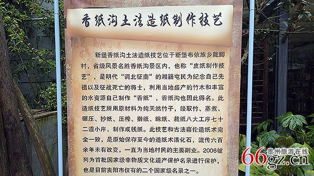 香纸沟,位于贵阳市东北部的新堡布依族乡境内,省级风景名胜区距贵阳市区40公里。风景名50.8平方公里,区内分布有山、水、石、林、洞、瀑布、峡谷、岩溶景光、文化古籍、民族风情君有独特之处及较高价值。此外,香纸沟还是远古蔡伦造纸术的遗地之一。