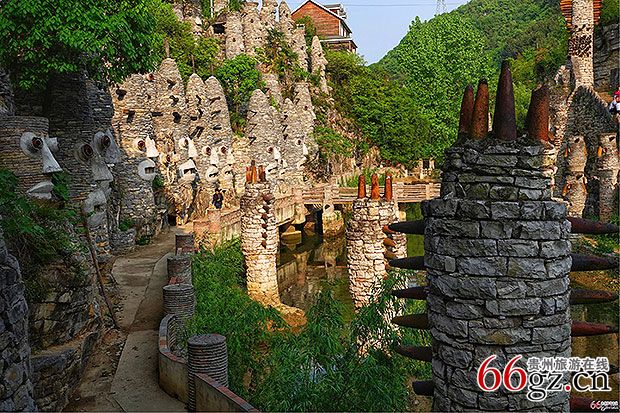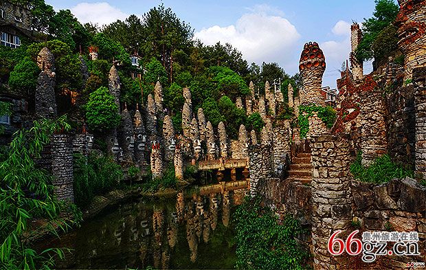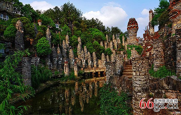 神秘的夜郎谷(宋氏古堡),位于花溪大学城斗篷山脚的小峡谷里,是贵州著名艺术家宋培伦先生花了二十多年的时间所精心打造的。 据说《忐忑》的演唱者龚琳娜和老罗的婚礼就是在这里举办的。这些用石头建造的城堡,依山傍水,大气磅礴,雄浑诡异,独具匠心,充满神秘色彩,也具有浓郁的艺术气息!