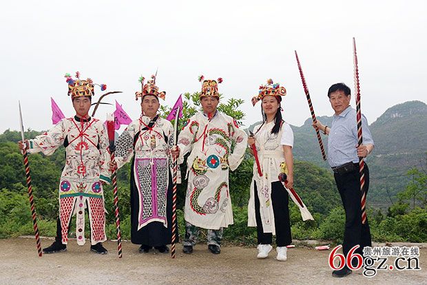 第三十九站,安顺,天龙,陈先松戏班,地戏。陈先松老师,国家级非物质文化遗产(地戏)传承人,师从陈玉章,十三岁开始学跳戏,至今五十多年。六十八岁高龄,还样样在行,跳、唱都还精湛无比。对待每一位来访者都热情接待,都会对各类来访者提供一些可行的建议。