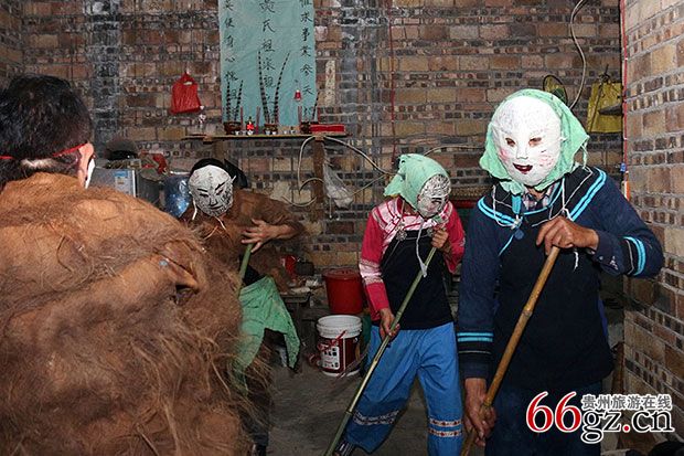 第三十八站,册亨,丫他,板万,布衣哑面戏,这是一个以李姓家族为主的“戏班子”。因为从严格意义上讲,他们算不上傩坛班,一,没有祭祀;二,没有供奉对象;三,没有传承教义。但他们对该戏的传承却是一脉相承,自觉形成的不成文规定却成为每一位传承人的行为规范。