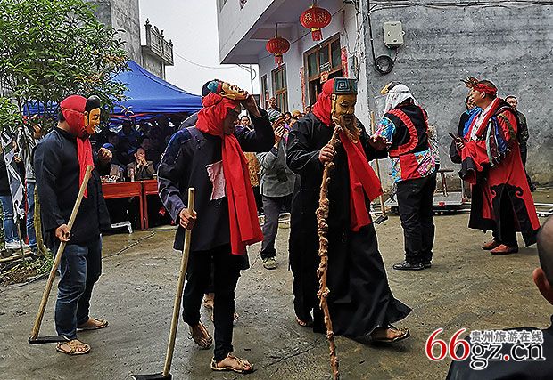 当天中午十二点,贵州省市县专家来到了七百渡村,观看了傩戏。