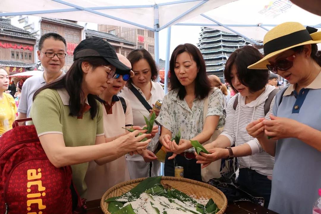 以文树旅,民俗活动丰富旅程。四时花竞巧,九子粽争新。粽子是端午节的传统美食,各地做足粽子的文章,并与各地民俗相结合,开展丰富多样的文化活动,给游客的旅途增添了有滋有味的民俗活动。贵阳市花溪区开展“包粽子、打糍粑、做香囊”传统民俗活动;遵义市赤水市开展贵州省“我们的节日·端午”主题文化活动、播州区开展端午节斗牛表演活动、务川县开展“我们的节日·端午之‘粽’情仡佬·乐活务川”活动、道真县端午仡佬情歌对唱;毕节市织金县开展端午民族山歌争霸赛,大方县开展“六寨苗族端午跳花节”;贵安新区云漫湖景区开展“快乐‘粽’动员”活动;黔东南州凯里市下司古镇、锦屏县隆里古城、丹寨县万达小镇开展百人包粽、香包制作、彩蛋彩绘、非遗独竹舟表演及苗族盛装巡游等活动。