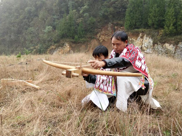 弩是运用机械力量进行射箭的弓,是古代战争的重型武器,源于古代先民在特定的环境中发明和使用的一种防身和打猎工具。“仙马苗族射弩”盛行于普定县猴场乡仙马村的村村寨寨,主要在仙马村加担弯、马桑寨一带。