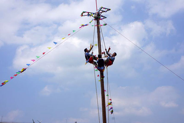 “踩月亮”又名爬花杆,爬花杆历史悠久,表演难度高,惊险刺激,被誉为“云端上的舞蹈”,它是苗族同胞的一种图腾崇拜,同时也是苗族传统体育项目之一,这一活动已有数千年的历史。表演这个节目的青年不用保险绳,能在15米的高杆上吹奏芦笙,完成各种惊险而优美的动作。“踩月亮”集芦笙音乐,舞蹈、杂技和苗族风情于一体,是民间传统体育文化的一枝奇葩。