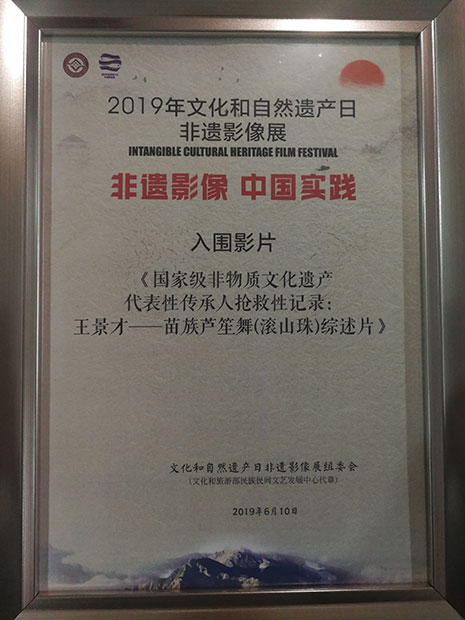 在刚刚闭幕的由文化和旅游部非物质文化遗产司指导,文化和旅游部民族民间文艺发展中心、国家图书馆联合主办的2019年文化和自然遗产日非遗影像展(以下简称“非遗影像展”)上,我省国家级非物质文化遗产代表性传承人抢救性记录工程——《王景才(苗族芦笙舞滚山珠)综述片》被组委会列为“评委会推荐影片”。