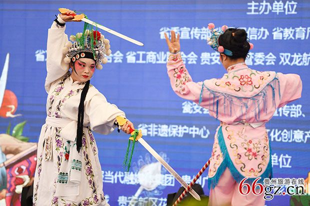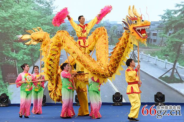 随后,瓮安县人民政府代表进行旅游推介,活灵活现的把瓮安旅游资源风貌展现在观众眼前。接着八个非遗展演节目依次进行,包括热情奔放的《苗族搓梗仔采阿诗舞》、极具特色的《瓮安本地调》、悠扬高亢的《唢呐演奏》、别有风趣的《金钱杆》、明朗风趣的《灯夹戏》、激越奔放的《苗族板凳舞》、栩栩如生的《彩龙表演》,让人目不暇接。