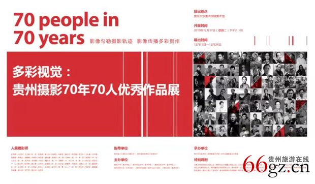 贵州旅游在线讯 12月15日,记者从贵州省政协获悉,贵州摄影70年70人优秀作品展定于17日(周二)下午在贵州大学美术学院揭幕,为新中国建立70周年献上精彩独特的文化厚礼,展览至24日结束。