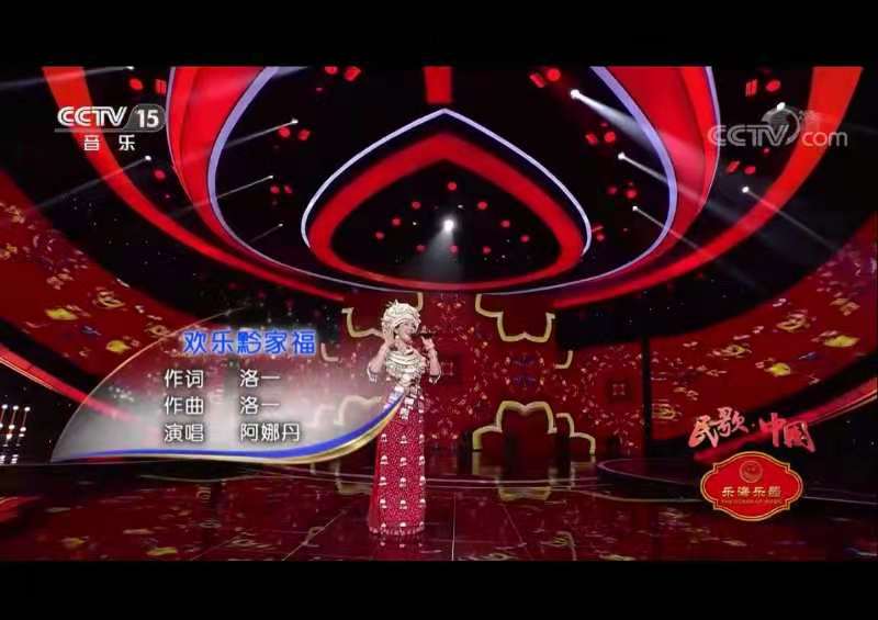 11月24日,中央广播电视总台音乐频道“民歌中国”栏目首播贵州籍歌手阿娜丹的代表作《欢乐黔家福》,阿娜丹已经多次受邀录制央视节目,成了央视常客,这次再次受邀录制民歌中国,阿娜丹倍感荣幸,能把家乡的歌唱到央视,为宣传家乡贵州作自己力所能及的贡献!《欢乐黔家福》是阿娜丹的代表作歌曲之一,这首歌是由北京非常有才华的青年音乐唱作人洛一老师为阿娜丹量身创作,洛一老师常到贵州采风,对贵州的民族风情和音乐文化元素有很深印象的和自己独到的见解,这首歌词曲都突出了一个“黔”字,贵州称为“黔”,同时也指阿娜丹的家乡黔东南州,歌曲曲风欢快大气,表现了贵州各民族儿女团结奋进,幸福和谐的美好生活画面,也唱出了苗家儿女对美好生活的向往和赞美,歌曲也引用了苗族音乐元素,此次录制,导演选中了这首欢快的歌曲,在昨天11月24首播,11月27日再次重播,据透露,歌曲还会在春节期间再次播出。