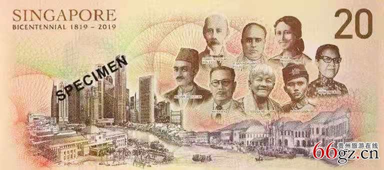2019年6月10日,为纪念新加坡开埠200周年,新加坡金融管理局首次推出20新元纪念钞,著名华侨陈嘉庚等人头像被印在这款纪念钞上。 张圣 供稿