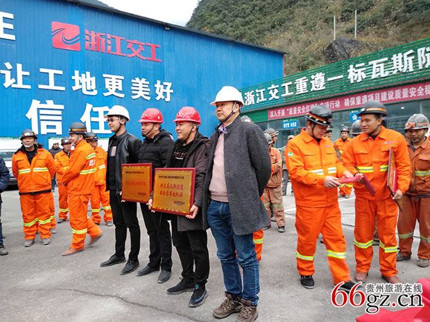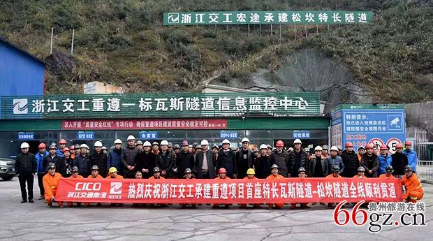 松坎隧道,是分离式特长瓦斯突出隧道,全长3.1公里,为重(庆)遵(义)扩容项目3个瓦斯隧道之一。隧道直穿山岭,桥梁隧道相接,山体内有急倾斜煤层群,瓦斯含量高,压力大。是浙江交工集团承建的第一座瓦斯隧道。自开工以来,重遵一标项目部用“红军不怕远征难”,“乌蒙磅礴走泥丸”的精神,精心组织施工,严抓工序衔接,抓牢安全质量管控。经历了下穿老兰海高速,洞口偏压沉降,洞内经历断层、溶洞、小滑层、小岩爆、涌水、瓦斯超限,喷孔等多项考验。利用机械化、智能化的设备投入,信息化的管理。通过多次优化施工方案、合理调配资源,建立瓦斯突出隧道“九大系统”,对隧道安全施工实施有效管理和控制。历时三年,终于啃下了这个最难啃的硬骨头,打赢了这场的攻坚战。取得了贵州公路建设历史上,第一个“特长瓦突三车道双幅隧道”安全贯通,“三军过后尽开颜”的胜利。并且为贵州省在瓦斯隧道的施工及安全管理积累了宝贵的经验。