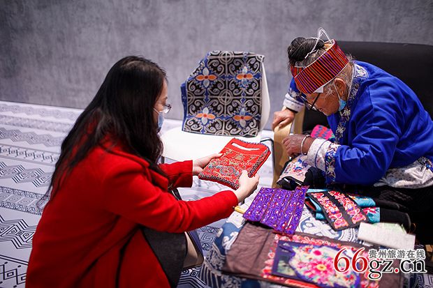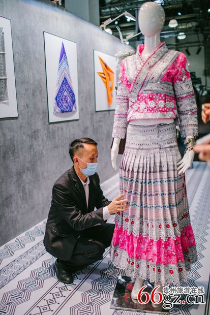 “锦绣乾坤”贵州苗绣主题展的现场布置元素,均由苗绣相关纹样提取,注重以时尚表达方式展现苗绣风采,更多发掘苗绣的文化底蕴及发展潜能。展品取自苗疆故事、古苗疆、贵银、梅子留香,及黔西县文丽蜡染刺绣有限公司、贵州织黔货文化发展有限公司等生产的贵州本土品牌,更有国际新锐设计师品牌022BLUFF、崔瀚宇Max 及设计师品牌集合店Mio Queenie。开展当天,苗绣艺术家、苗疆故事创始人曾丽介绍说,苗族有很多支系,苗绣品类有几百种,苗绣的纹样是远古时候就留存下来的文化符号,具有非常深厚的文化内涵和巨大的文化价值,它的传承和发展非常重要。苗绣是一个大千世界,它展现的是一个多维空间,能与人们的心灵产生共鸣,激发人们的好奇心和想象力。无论是锦绣黔坤贵州苗绣主题展这类苗绣主题宣传活动,还是苗疆故事蕴这种富含苗绣基因的品牌,都是贵州少数民族文化的一种“再表达”,是将贵州苗绣古老符号提炼出来作基础,融合时尚元素进行的“再创造”。这种形式能吸引让更多年轻人关注苗绣,吸引更多成熟的品牌与苗绣产生链接,使苗绣有更国际化、更多元化的呈现,助力业内人士看到苗绣产业化、品牌化发展的广阔前景;黔东南苗族侗族自治州施秉县的苗绣非遗传承人刘忠燕与80多岁高龄的老母亲,在现场展示传统苗绣技艺,成为主题展的一大亮点,不少品牌商被她们精湛的苗绣技艺所折服,多家企业与绣娘们达成合作意向;上海沐珺服饰有限公司品牌于蕋蕊认为,锦绣黔坤苗绣主题展在此次上海时装周mode展展区里最有特色,各种苗绣产品令古老手艺焕发新的生机,让苗绣与各种材料结合起来,很有艺术价值,也很有消费市场;化屋基村的杨井,将当地易地扶贫搬迁安置点苗绣车间生产的服饰带到主题展上,以一套“歪梳苗”粉色苗绣女装惊艳众人,网红们纷纷合影拍照,他的微信也加入不少合作品牌。