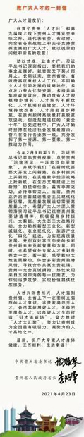 4月24日,由贵州省人才工作领导小组主办的第九届贵州人才博览会(简称人博会)在贵阳国际会议中心开幕。省委常委、省委组织部部长、省人才工作领导小组组长刘捷宣布开幕,副省长蔡朝林宣读省委书记、省人大常委会主任谌贻琴,省委副书记、省长李炳军《致广大人才的一封公开信》,副省长王世杰致辞,省领导何力、张光奇出席。