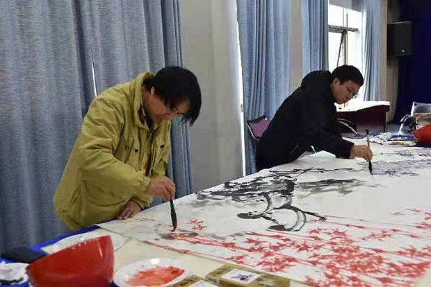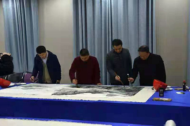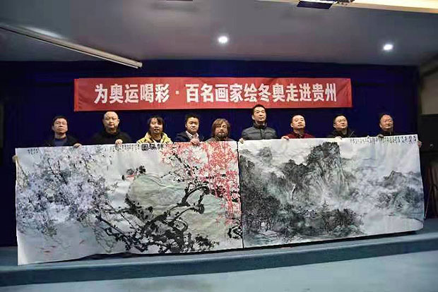 2021年12月13日上午十点半,在贵州省贵阳市乌当区的天海美术馆,贵州省文联副主席彭治力,贵州省美术家协会主席徐恒,中国美术家协会理事潘闻丞等多位贵州著名书画家共同创作了两幅奥林匹克题材的中国画作品:山水画《黔中锦绣》和花鸟画《祥瑞图》,在浓墨重彩中将中国西南文化风情与奥林匹克精神文化和谐相融。