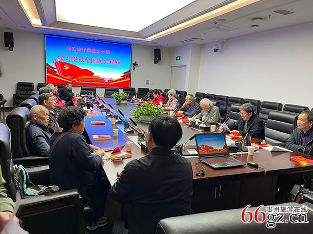 3月31日,贵州省文化和旅游厅离退休党支部在贵州美术馆,组织老同志学习第十四届全国政协第一次会议和第十四届全国人大第一次会议(简称两会)精神,传达全省老干老教工作会议主要内容和有关精神,并发放党的二十大辅导资料。