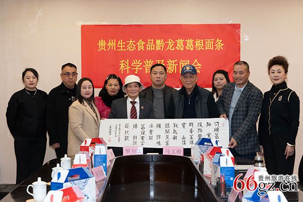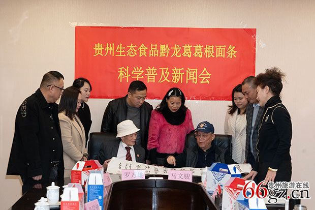 “黔龙葛”商标葛根面条创先研究、生产者,“贵州龙葛康中药材产业发展有限公司”董事长胡明强科学、客观、务实地介绍了葛根种植,“黔龙葛”商标葛根面条的开发研究、生产加工情况。中医药科学家、老副省长马文骏用自己在七、八十年代在遵义习水县巡回医疗,于土城镇救治病毒性乙型脑膜炎儿童的医疗实践,说明了葛根救治生命的重要作用。他说,当时病毒性乙型脑膜炎儿童发烧、痉栾厉害,前面的死亡率是100%。我去了以后,发现必须改进配方,胆子大一点,加大了葛根配方量,结果治疗四十多位,只有四位没有抢救过来。他的介绍获得了大家的赞扬。贵州恭邦建筑有限公司易国献董事长、张邺总经理介绍了科学技术普及推广、销售“黔龙葛”商标葛根面条的广阔市场及方法。地理科学家、贵阳科学技术普及作家协会秘书长罗万雄作了“贵州特殊地理环境与“黔龙葛”商标葛根面条产业发展”的演讲。提出了“吃‘黔龙葛’面条,促进全民饮食健康”的建议。