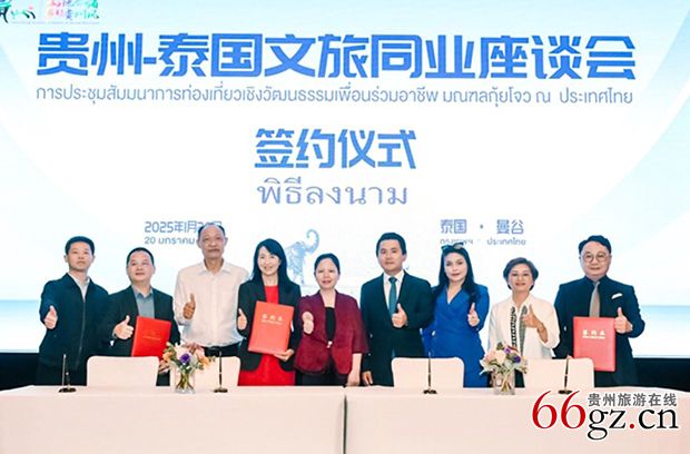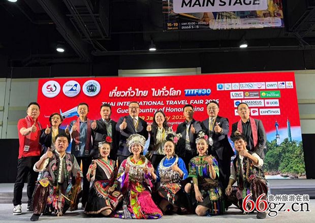 【链接:1 月 16 日—19日,泰国出境旅游协会主办的第 30 届泰国国际旅游展在曼谷诗丽吉皇后国家会展中心举办,为泰国出境旅游市场规模最大、参展国家和地区最多、影响力最广泛的专业旅游展会,吸引来自相关国家和地区的680多个旅游机构与企业参展,接待参观者逾30万人次。此泰国旅展已经成功举办30届,为全球旅游从业者提供一个展示旅游产品、交流经验和拓展市场的平台。为了拓展国际市场,提升贵州旅游知名度,贵州省文化和旅游厅精选省内入境旅行社与民族歌舞团前往泰国参展,奏响贵州入境旅游出国营销强音。参展团由航海家国际旅游服务(贵州)有限公司、贵州省旅投国际文化旅游有限公司、贵州民间假日旅行社有限公司、云天行旅游(贵州)有限责任公司、贵州贵人之旅旅行社有限公司等省内优强入境旅行社组成。参展团与泰国同行向泰国民众全面推介、促销贵州旅游线路产品,拜访了泰国出境旅游协会及泰国重要出境社,展示独特的文化、美食、美景等,介绍240小时过境免签政策红利,与泰国旅游业界进行了深度交流,促进两地旅游业界共同推广旅游品牌及线路产品。】