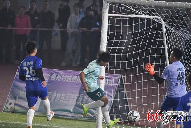 10月18日晚,山城贵阳气温骤降,贵州“村超”贵阳赛区依然如期在修文县体育中心惊艳开幕。“王阳明先生”穿越球场在中圈开球,以“千里之行 始于足下”来一场跨时空对话。揭幕赛由龙场悟道队与谷堡猕猴桃队对阵,为广大观众呈上一场精彩纷呈的草根足球盛宴。