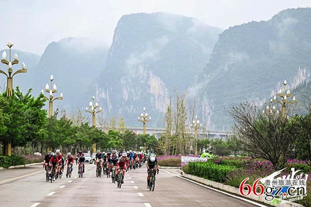 当天,作为赛事“全域联动、全链融合”的关键一环,S2以兴义万峰林为核心,途经峰林布依、阳光谷旅游度假区。赛道处于北纬25度黄金气候生态带,为选手提供了得天独厚的竞技环境。十月平均气温16-18℃,负氧离子浓度高达30000个/立方厘米,堪称“天然大氧吧”。骑行队伍穿梭于锥状峰林、布依村落与三角梅掩映的骑行绿道间,每一步皆是视觉盛宴。职业组96公里环线赛道融合喀斯特地貌与布依风情,途中27公里绕圈赛道(男子3圈、女子2圈):包含1个冲刺积分点、1个三级爬坡点、3处U型回头弯,将本赛段的技术点拉满,对车手控车技巧提出更高要求。