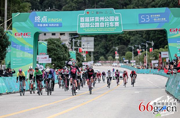 10月21日,首届环贵州公园省国际公路自行车赛在结束S1刺梨赛段、S2猕猴桃赛段比赛后,由黔西南州转场黔东南州,展开S3蓝莓赛段的激烈角逐。职业组赛道全长152公里,串联黔南丘陵地带与雷公山爬坡路段,赛道覆盖城市大道、乡镇公路、山地道路等多样路况,对选手的爬坡能力与节奏控制构成综合考验,为桥文体旅协同发展的具象化。最终,FITZSIMONS MITCHEL(菲茨西蒙斯)与KAKHKHOROVA MADINA(卡赫霍罗娃)分获职业组男、女组冠军。