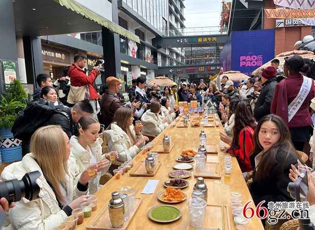 客人们来到新印1950文化街区,立即被主人迎到去茶山长桌前就座,听取抹茶、刺梨等贵州风味茶饮的制作工艺并现场品尝。晚餐的贵阳传统美味丝娃娃,着实令友谊小姐们难以“拿捏”。