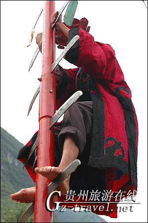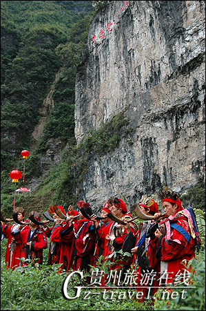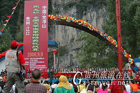 在开幕式上,梵净山神秘的傩技表演精彩绝伦:仙人合竹、口吃瓷碗、口含红铁、定鸡、上刀梯等节目蠃得了阵阵热烈的掌声,让现场的嘉宾及观众见识了土家傩文化的原始和神奇!参加傩技表演者的法师个个都身怀绝技,曾多次赴香港、日本、马来西亚等国家演出。