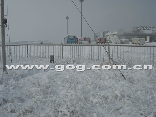 昨日,由于天气趋于好转,铜仁机场又投入正常营运。图为被冰雪覆盖的铜仁机场。