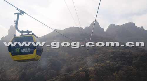 据了解,梵净山索道总投资1.2亿元,全长3500米,机械和电气设备均从世界最大的索道专业制造公司——奥地利多贝玛雅公司进口,共有44个客运吊厢和2个货运吊厢,吊厢最大载荷1640千克,可以同时容纳8人乘坐。索道速度为无级变速,最慢为1米/秒,最快为6米/秒。