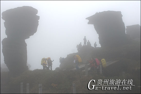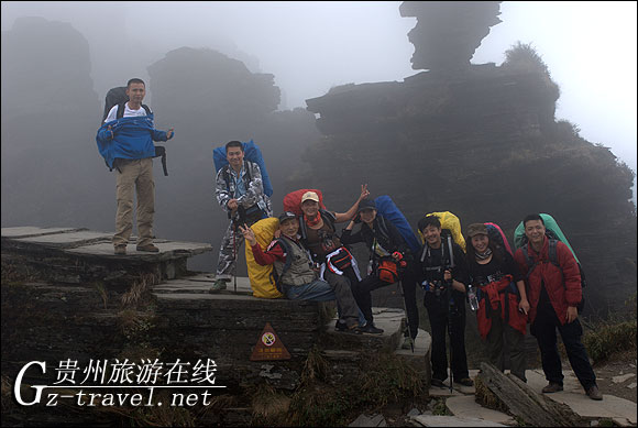 铜仁户外俱乐部的驴友在翻越梵净山顶时留影
