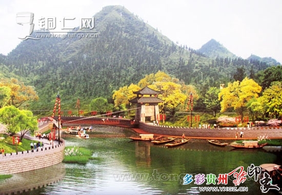 大明边城景区位于贵州省铜仁市东郊锦江之畔,东接凤凰60公里,西距梵净山53公里。景区总投资11.9亿元,总控制面积56平方公里,总建设面积3000亩,是贵州最大的综合历史文化景区,融合“体验互动”的旅游新模式,致力于成为国家5a级景区。自2010年3月22日开工建设以来,项目部紧排工期,加班加点进行施工,工程进展顺利。目前,该项目第一期核心景区已经基本完成,施工队伍正在进行配套设施和景观性工程的建设。
