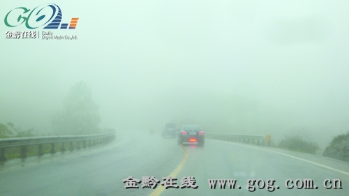 昨日,由于冷空气入侵,铜仁市地势较高的省道玉铜公路茶店至老山口、铜大高速铜仁南至田坪、铜仁至松桃的大兴、铜遵公路苗王坡等路段大雾封山,能见度很低,驾车行驶在这些路段十分困难,司机们只能打开防雾灯、近光灯和双闪灯,缓慢行驶。