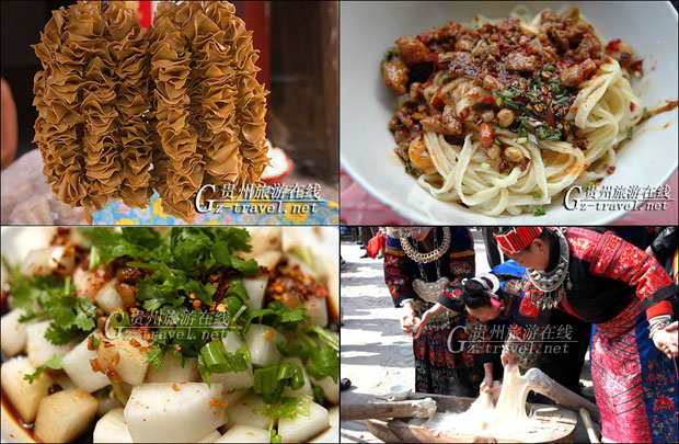 锅巴粉,是贵州铜仁的特有小吃。主要由绿豆作成,成薄纸状,绿色,切成长条状后煮食,有绿豆清香,再佐以姜葱、油辣椒、肉哨等配料,食之脆香酥爽,更有清热去火之功效。