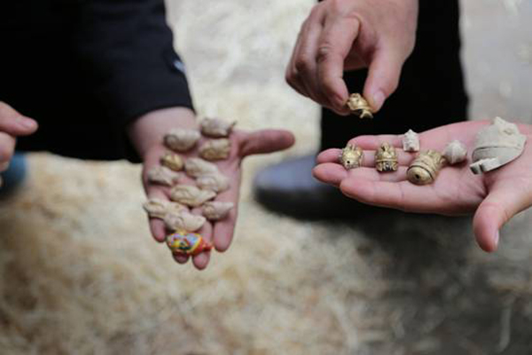“尺寸越小,雕刻的复杂程度就越高,对上色精准度的要求越高,双手受伤的几率也就越大。”杨云霞说,完成一个标准尺寸的傩面具需要花费一整天的时间,但是要完成一个一厘米大小傩面具却需要大半天的时间。