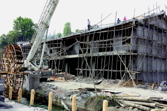 提溪土司城总投资预计2.2亿元,规划面积0.83平方公里,规划常住人口5000人,分三期建设,一期工程包括64栋159户生态移民房主体工程、路网管网、土司广场、停车场、展厅以及土司文化园、水体景观、农耕文化长廊、乌木园等。目前,共投入9800万元,预计到月底完成一期工程。