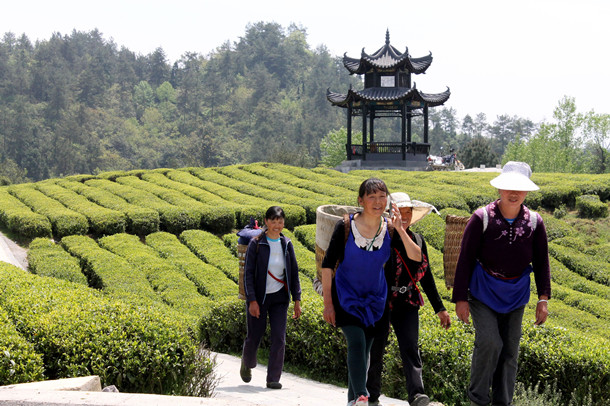 印江洋溪镇蒋家坝茶场里快乐的采茶女。