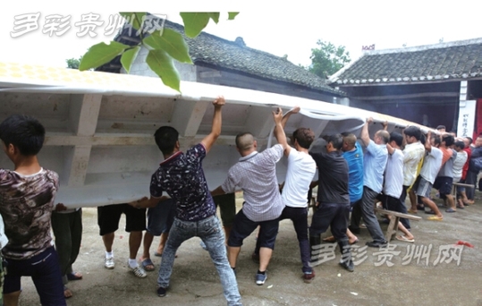 临近端午,2015中国传统龙舟大赛(贵州·碧江6月19日-20日)即将到来,贵州铜仁市松桃县蓼阜镇落塘村村民自筹资金2.4万元,在网上购买了一条龙舟,喜迎端午节的到来。