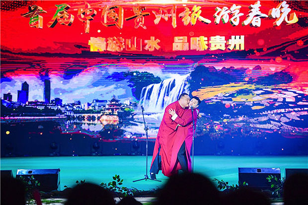 贵州旅游春晚由精通德、英、汉三国语言的德国明星汤亚莉主持。春晚节目新颖独特,内容丰富,立足民族,源于自然,记住乡愁,气势磅礴,热热闹闹。晚会在天生兄妹的《贵州我深爱的家乡》中欢快拉开帷幕。众多本土明星,内地民族音乐人气组合“天生兄妹”,“阿雄部落”“火之子”,民族歌手潘兴周、阿蕾倩、金华丽、吴明富、朵久央、梁韬等真情献唱;当红民族乐团“木易丹艺术团”等登台献艺;东方迪斯科“反排木鼓舞”、蝴蝶妈妈传奇故事《苗蝴蝶》等魅力展现。晚会在吴志勇的《酒鼓情歌》中顺利落下帷幕。